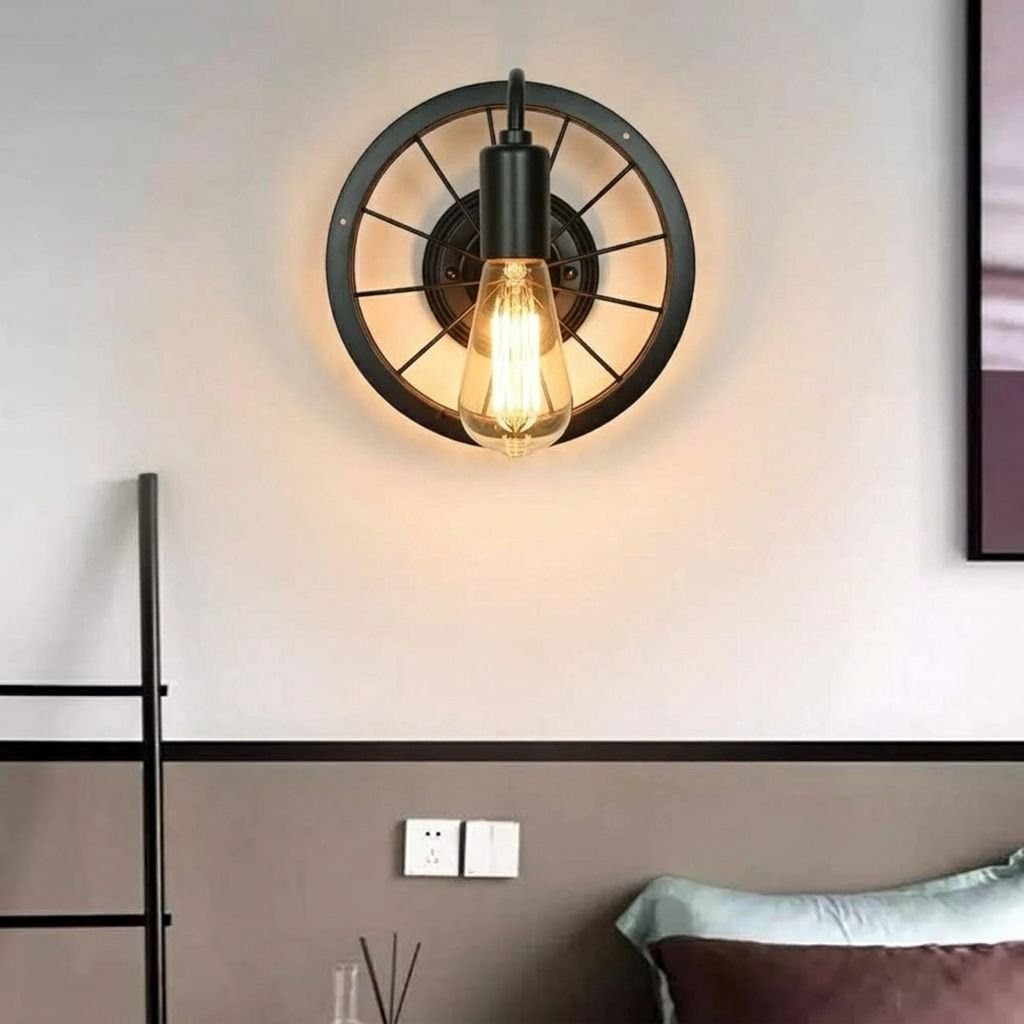 Este aplique destaca por su original diseño en forma de rueda de bicicleta estilo aro metálico de 30 cm, que mezcla lo vintage con lo moderno para darle personalidad a cualquier ambiente.