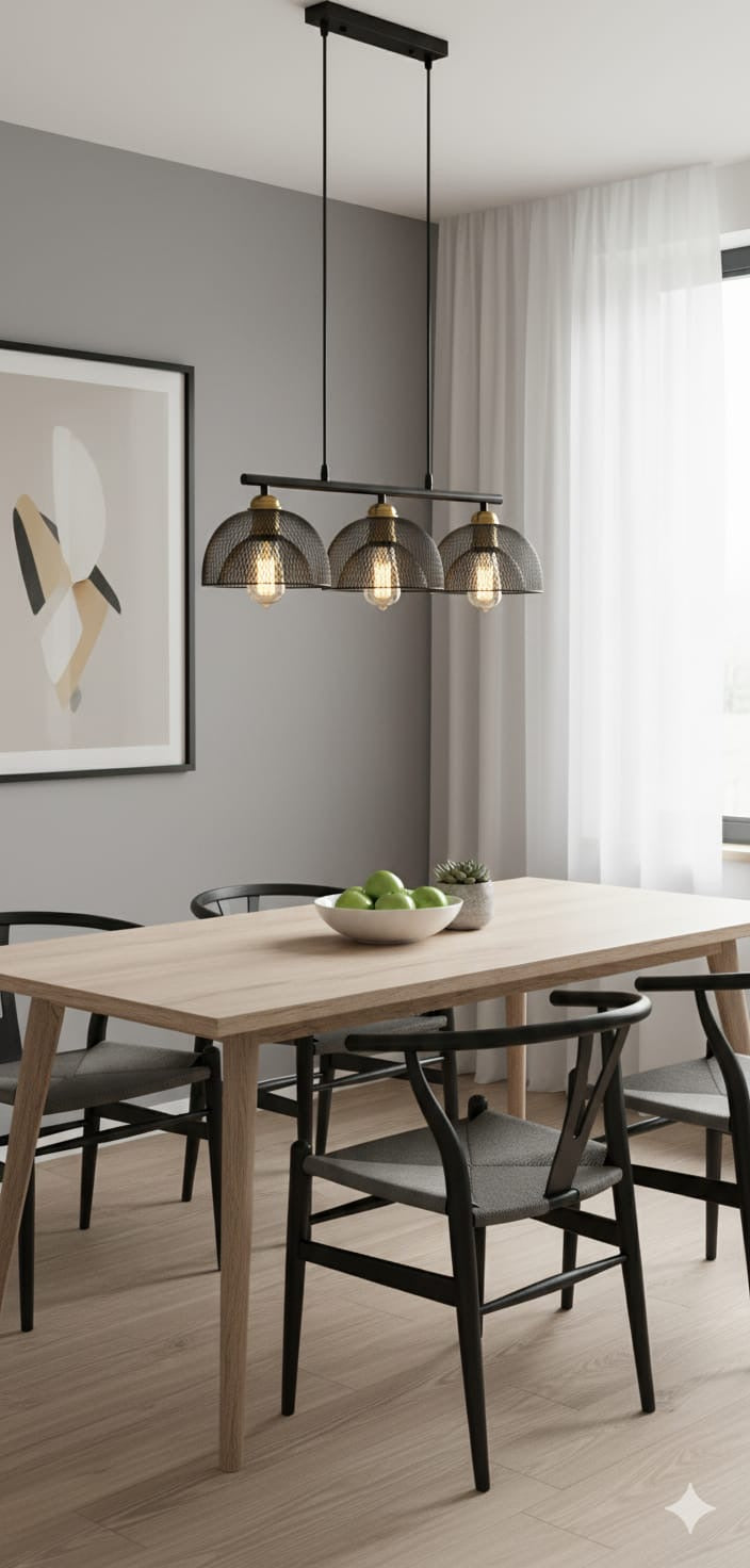 Ideal para instalar sobre mesas de comedor, barras de cocina o en espacios abiertos. Su cable regulable de hasta 1 metro facilita ajustar la altura para adaptarse a diferentes techos y necesidades.
