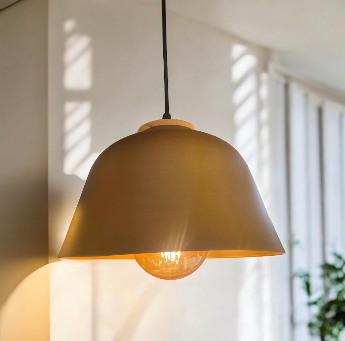 Ilumina tus espacios con elegancia y calidez gracias a esta lámpara colgante metálica en color dorado mate, diseñada para uso interior y exterior. Su combinación de metal con detalles en madera clara aporta un equilibrio perfecto entre modernidad y estilo natural, ideal para ambientes contemporáneos, nórdicos o minimalistas.
