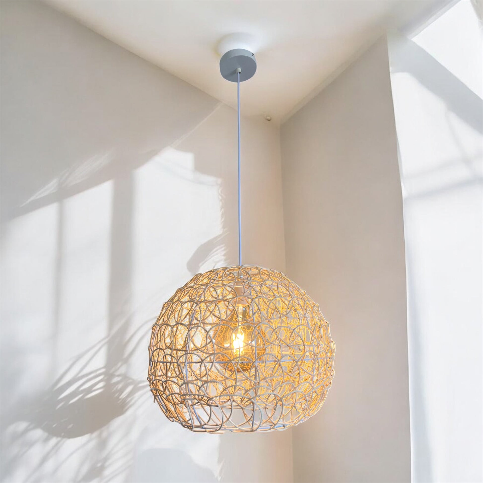Dale un toque cálido, natural y contemporáneo a tus espacios con la lámpara colgante Lía. Con un diseño que evoca la suavidad de un nido de pájaro, esta pieza única combina la elegancia del metal blanco con la calidez de las fibras naturales en tono claro, creando una atmósfera acogedora y con estilo.