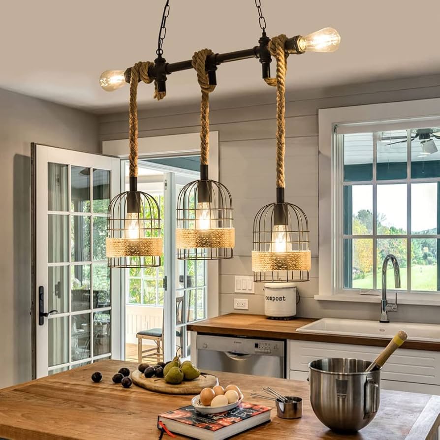 Lámpara Colgante Retro Industrial con Toque Rústico – Diseño Único con Jaulas y Soga